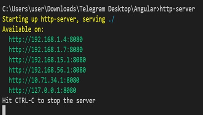 ![]() | In case your 80 port is blocked you can run this server on a specific port using "http-server –p 99". This will run this server over 99 port. |